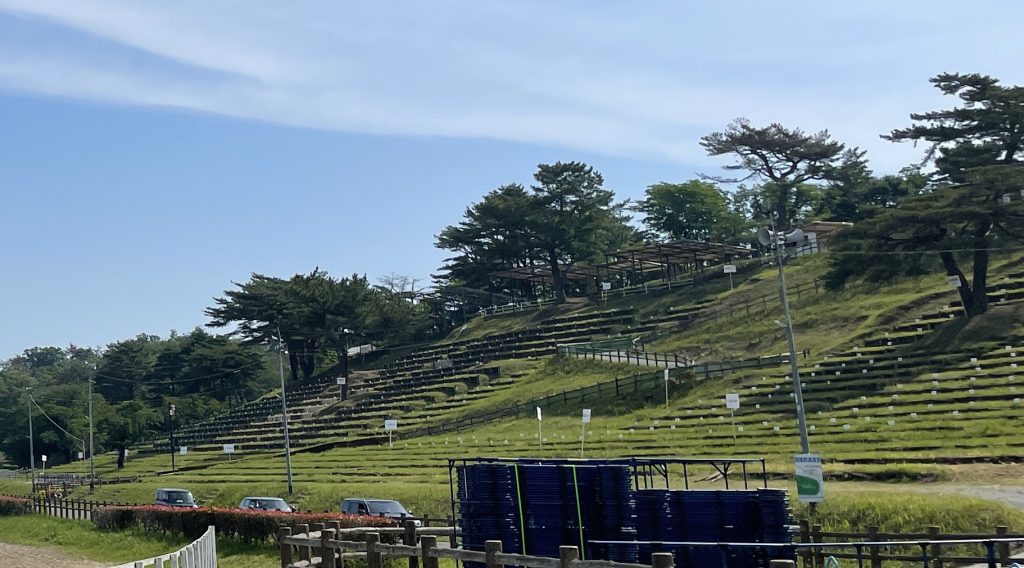 自由席は自然の地形を生かした、なだらかな丘が段々になった草地に座ってご観覧いただけます。